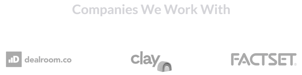 Logos of companies using PredictLeads data, including Dealroom, Clay, and FactSet.